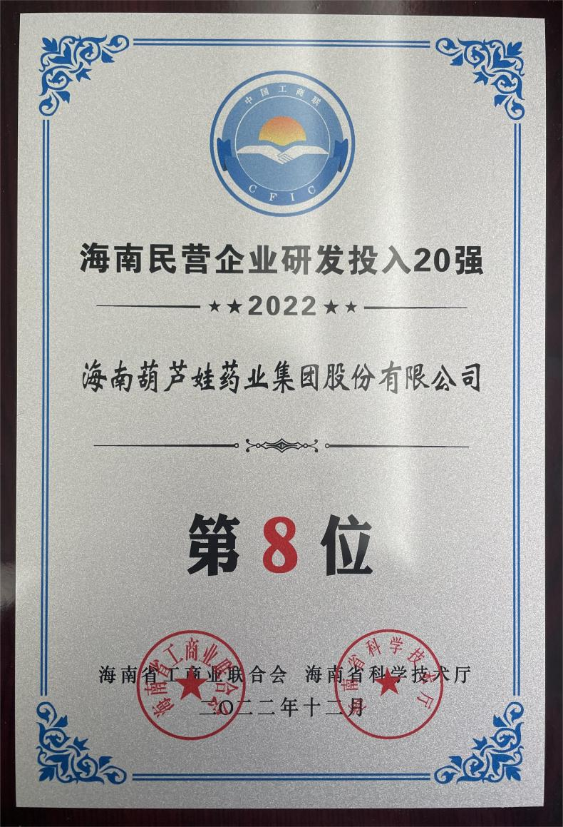 12月23日,2022海南民营企业50强和研发投入20强发布会在海口举行。会上发布了“2022海南民营企业50强”“2022海南民营企业研发投入20强”榜单和分析报告。尊龙凯龙时人生就是博网址药业再次荣登两榜,在海南民营企业50强榜单中位列第25位,较去年上升8位,这也是公司连续三年登榜;在海南民营企业研发投入20强中位列第8位,较去年上升7位。